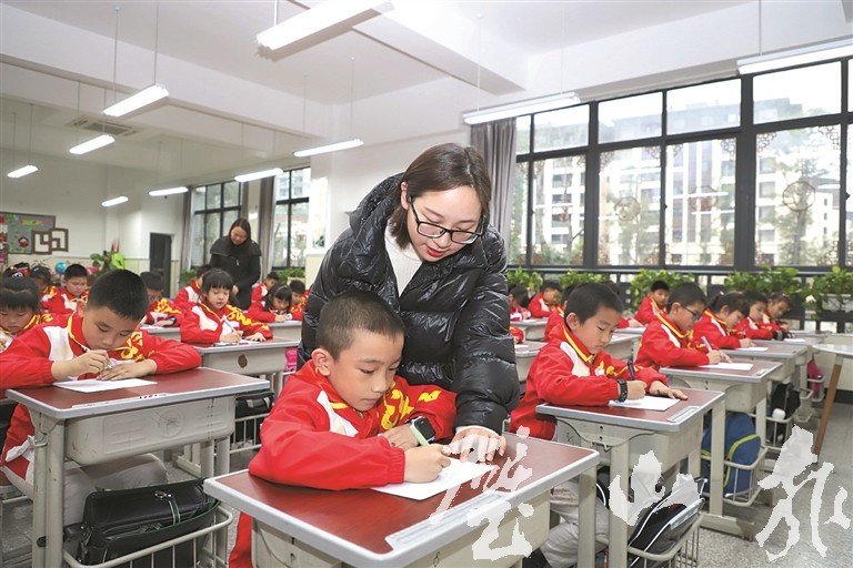 老師正在輔導(dǎo)學(xué)生課后作業(yè)(記者 王鋒 攝)