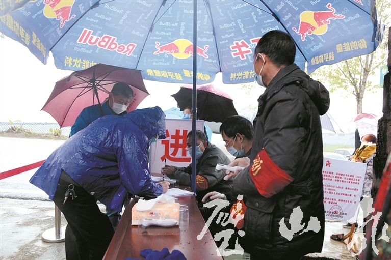 “你好,請問叫什么名字,提前預(yù)約了嗎,麻煩報一下身份證號碼?!?月4日上午9時,金劍山公墓入口處,十幾名市民戴著口罩,手拿鮮花等祭祀物品在檢查點耐心地等候,待工作人員進(jìn)行體溫測量以及查驗登記后,有序進(jìn)入墓區(qū)祭掃。