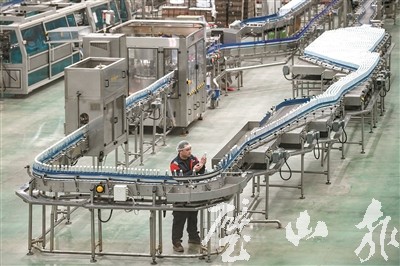 10月20日,品正食品有限公司,諾大的瓶裝水生產(chǎn)線僅有一名工人 ,可自動組裝、自動檢測和自動調(diào)試的智能化生產(chǎn)線正有條不紊地作業(yè)。