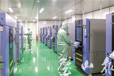 10月19日,康佳光電技術(shù)研究院有限公司,技術(shù)人員在智能化芯片生產(chǎn)線上忙碌。
