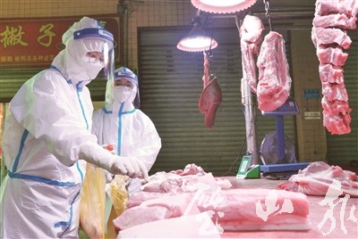 璧城衛(wèi)生院檢驗科工作人員在農(nóng)貿(mào)市場采集樣本