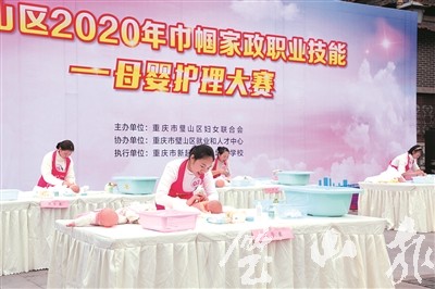 11月8日,區(qū)婦聯(lián)聯(lián)合區(qū)就業(yè)人才中心、重慶市新起點(diǎn)職業(yè)培訓(xùn)學(xué)校在秀湖水街,舉行了2020年巾幗家政職業(yè)技能——母嬰護(hù)理大賽,轄區(qū)20名育嬰師匯聚一堂同臺(tái)比拼,共展精湛技藝。