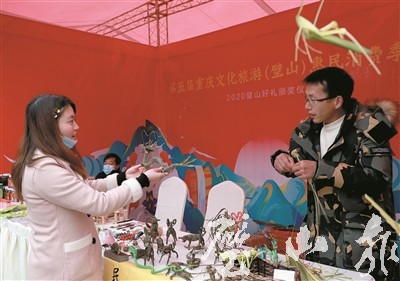 泡鳳爪、璧山月餅、璧山兔、璧山八景茶杯、荷螺—木雕、馬丁靴、玉血橙……記者看到,廣場(chǎng)四周的展覽展示區(qū)內(nèi),轄區(qū)15個(gè)鎮(zhèn)街、3個(gè)園區(qū)管委會(huì)以及30余家文旅企業(yè)、門店加盟消費(fèi)季,推出各種特色旅游商品、文創(chuàng)產(chǎn)品、農(nóng)副產(chǎn)品、工業(yè)消費(fèi)品、扶貧產(chǎn)品、非遺產(chǎn)品等,吸引廣大市民積極選購(gòu)。
