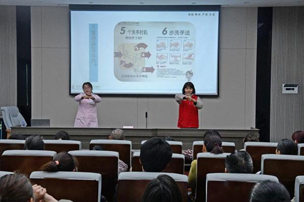 璧山區(qū)婦幼保健院針對特定群體和受眾,將愛國衛(wèi)生月宣傳內(nèi)容歸檔分類,以生活篇、營養(yǎng)篇、母嬰篇、運動篇、健康衛(wèi)生小貼士等形式制作成海報、短視頻,在醫(yī)院人流較大的門診大廳、預防接種中心等地開展宣傳。同時,醫(yī)院還組織醫(yī)護人員開展“健康衛(wèi)生進學校”活動,分別走進實驗小學永嘉校區(qū)、伊頓、牛津幼兒園,開展愛國衛(wèi)生知識宣講、發(fā)放宣傳資料和宣傳文化用品,現(xiàn)場示范教學六步洗手法、眼保健操等內(nèi)容。
