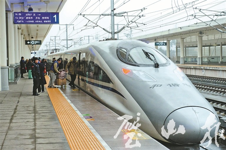 1月25日,由成都東開(kāi)往昆明南的G2887次高鐵緩緩?fù)?吭诔捎甯哞F璧山站,這標(biāo)志著今后在璧山站可以乘坐直達(dá)貴陽(yáng)、昆明、南寧、廣州高鐵了。據(jù)悉,1月25日,備受關(guān)注的渝貴高鐵正式開(kāi)通運(yùn)營(yíng),根據(jù)鐵路部門的計(jì)劃,成都東站在渝貴鐵路開(kāi)通后將開(kāi)行到貴陽(yáng)、昆明、南寧、廣州等方向的動(dòng)車組。作為成渝高鐵其中一站的璧山,也有部分列車在此經(jīng)停。今后,璧山人坐動(dòng)車“南下”可直達(dá)貴陽(yáng)、昆明、南寧、廣州等城市。(記者 曾清龍 攝)