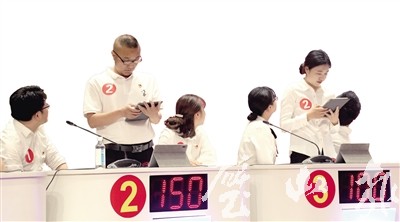 “學(xué)習(xí)強(qiáng)國”平臺(tái)黨史知識(shí)競(jìng)賽決賽現(xiàn)場(chǎng),選手激烈答題。