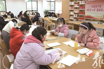 大年初三一大早,記者來到區(qū)圖書館,與旅游景點的熱鬧喧囂不同,這里的每個人都安靜地坐在座位上,認真伏案閱讀,不少學生也在認真復習功課,寬敞明亮、安靜溫馨的閱讀環(huán)境讓書香氛圍更加濃厚。