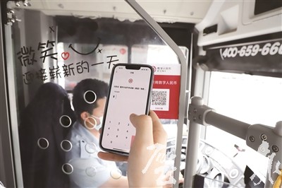 4月29日,璧山至白市驛的城際公交車(chē)上,一位乘客使用數(shù)字人民幣APP,向車(chē)載移動(dòng)支付設(shè)備出示了數(shù)字人民幣APP付款碼,完成搭乘智慧公交的數(shù)字人民幣扣款。