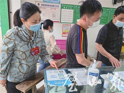 為持續(xù)筑牢疫情防控屏障,充分發(fā)揮人大代表在疫情防控工作中的監(jiān)督指導作用,日前,三合鎮(zhèn)人大主席團組織區(qū)、鎮(zhèn)人大代表及相關部門負責人,對轄區(qū)內(nèi)各藥店場所碼設置、“兩驗一測一戴”等措施落實情況進行突擊檢查。針對督查中發(fā)現(xiàn)的隱患和問題,人大代表現(xiàn)場及時督促責任單位立即整改到位,齊心協(xié)力筑牢疫情防控安全防線。(記者 林光耀 攝)