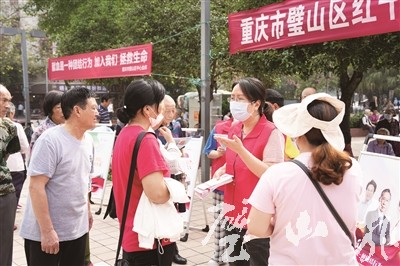活動(dòng)中,志愿者還來(lái)到廣場(chǎng)上招募獻(xiàn)血者。每當(dāng)有市民走過(guò),他們就面帶微笑迎上前,熱情詢(xún)問(wèn)是否愿意參加無(wú)償獻(xiàn)血。當(dāng)有市民停下腳步,他們就會(huì)進(jìn)一步講解無(wú)償獻(xiàn)血的相關(guān)知識(shí)以及獻(xiàn)血者所享有的優(yōu)惠政策等,帶動(dòng)更多的市民加入到無(wú)償獻(xiàn)血的隊(duì)伍中來(lái)。