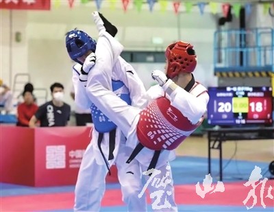 葉銘豪(青方隊員)參加2022年全國跆拳道青年精英集訓(xùn)營對抗選拔賽