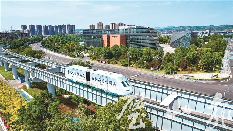 8月15日,車身涂滿創(chuàng)文標語的云巴駛過文化藝術中心。
