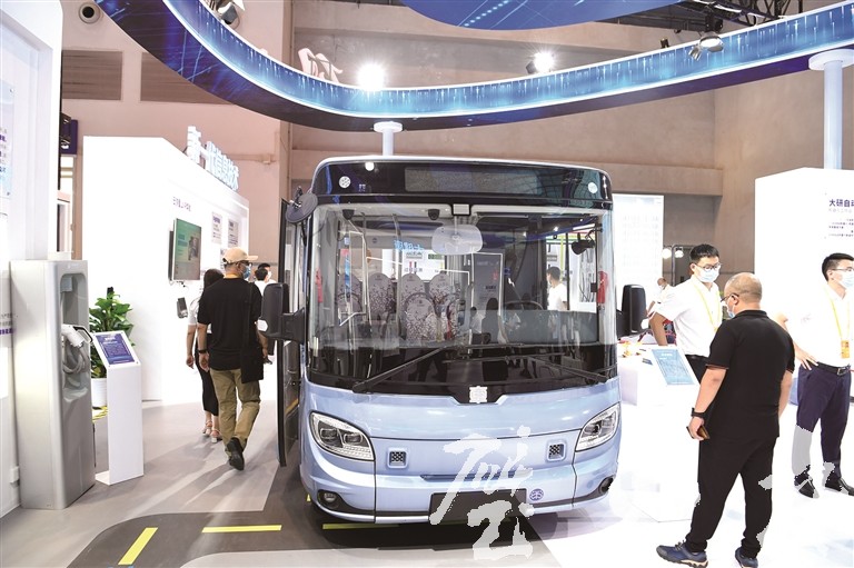 除了在新能源電池配件領(lǐng)域璧山擁有十足的話語權(quán),此次智博會上,我區(qū)還帶來了能夠令參展游客親身體驗的展品——微循環(huán)車。該車型屬于中車恒通公司最新“T6”平臺車型,性能達到國內(nèi)領(lǐng)先水平。T平臺是中車電動以自主電機、電控、電池、電輔、充電及智能網(wǎng)聯(lián)技術(shù)為核心,圍繞整車可靠、經(jīng)濟、安全、智能開發(fā)的技術(shù)集成平臺。在2021道路運輸車輛展中,被評為“2021年度新能源客車創(chuàng)新產(chǎn)品”。