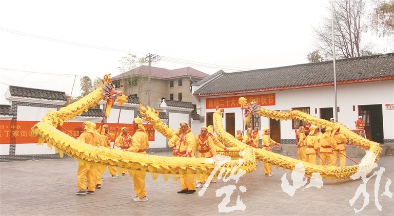 丁家街道舞龍表演。 (記者 張翠蓮 巫秋云 攝)