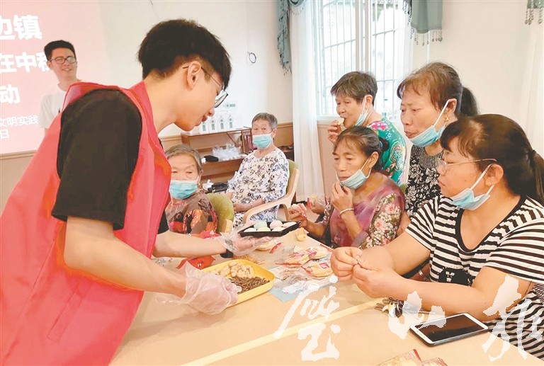 河邊鎮(zhèn)志愿者陪敬老院老人過中秋。 (記者 朱大亮 攝)