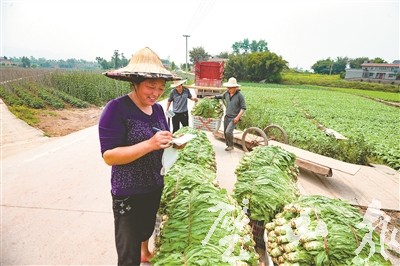 2012年8月22日,七塘鎮(zhèn)將軍村蔬菜基地迎來豐收,菜農(nóng)收獲蔬菜。