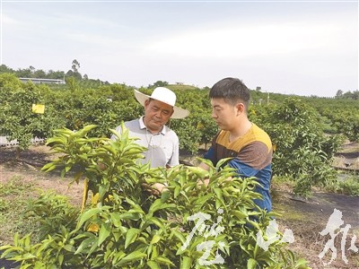 楊順(右)查看果樹(shù)生長(zhǎng)情況