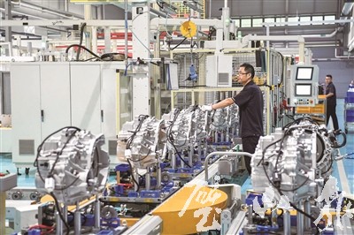 青山工業(yè)有限責任公司DCT變速箱生產(chǎn)線,工人開足馬力加緊生產(chǎn)。 (資料圖片)