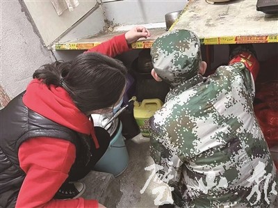趕到陳宗鑫家后,鄒盛祿和宋平敏發(fā)現(xiàn)水管爆裂的位置在廚房,因沒(méi)有安裝地漏,廚房和陽(yáng)臺(tái)的水已經(jīng)淹到腳踝。兩人立即關(guān)閉閘閥、排出家中積水……經(jīng)過(guò)一個(gè)多小時(shí)的排污處理,老人家中污水才全部排出。來(lái)不及緩口氣,宋平敏又接到了街道黨工委的電話(huà),穿著那雙已浸濕的鞋子又奔赴下一個(gè)防疫“戰(zhàn)場(chǎng)”。