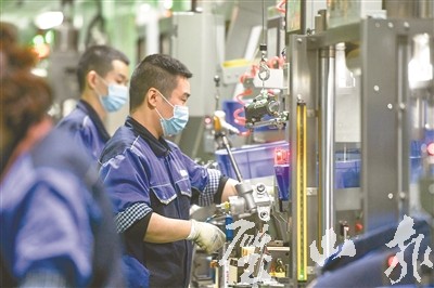 工人在生產(chǎn)線上忙碌(記者 曾清龍 攝)