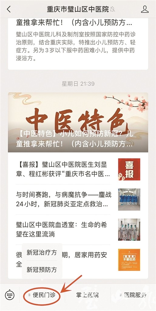 璧山報(bào)訊(首席記者 謝捷 熊浩)要預(yù)防和治療新冠肺炎又不便于線下購藥的市民注意了,昨日,記者從區(qū)中醫(yī)院獲悉,該院已開通線上購藥通道,市民通過微信公眾號(hào)可輕松網(wǎng)購“新冠肺炎預(yù)防和治療中藥方”,享受中藥一站式快遞到家。