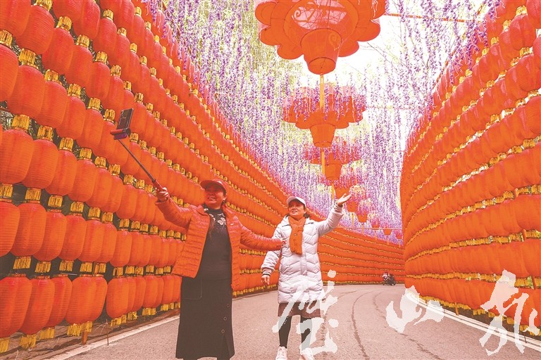 春節(jié)將至,連日來(lái),城區(qū)內(nèi)各類(lèi)迎春燈飾亮相景區(qū)、街道,營(yíng)造出濃濃的節(jié)日氛圍,吸引了不少市民拍照打卡、駐足欣賞。(記者 康思嘉 攝)