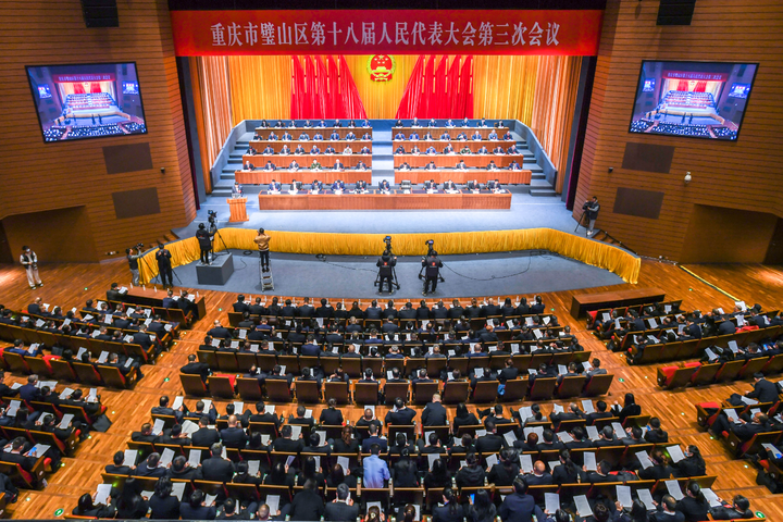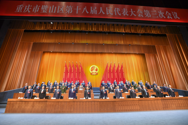 璧山區(qū)融媒體中心-愛璧山客戶端訊(首席記者 熊浩  謝捷 記者  蘇慶  文/圖)生機與活力涌動,希望與夢想升騰。2月10日上午,區(qū)十八屆人大三次會議在區(qū)文化藝術中心大劇院隆重開幕。