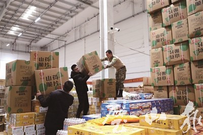 區(qū)農(nóng)產(chǎn)品寄遞物流云倉,工人正在搬運農(nóng)產(chǎn)品。