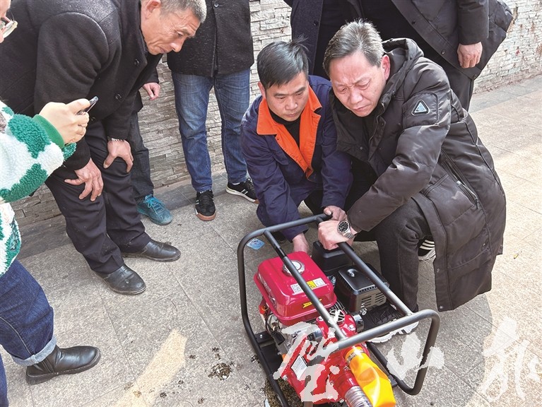農(nóng)技人員演示抽水機(jī)操作要點(diǎn)