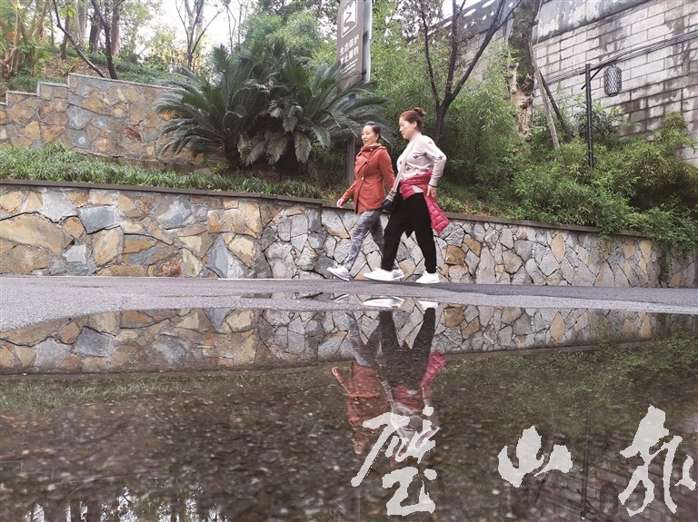 雨后,市民添衣出行。