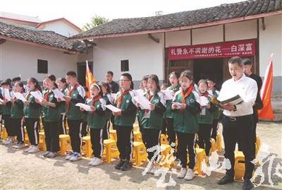 在大興鎮(zhèn)白深富烈士故居,老師為學(xué)生們上了一堂“行走的思政課”。
