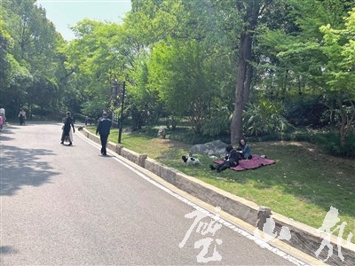 春日好天氣吸引了不少市民出門賞景、踏青。連日來,記者走訪發(fā)現(xiàn),公園、景區(qū)整體環(huán)境秩序良好,但仍可見到不文明現(xiàn)象的發(fā)生,十分影響城市形象。圖為4月19日,秀湖公園,游客將野餐墊隨意鋪在路邊草坪,并將寵物帶入景區(qū)。