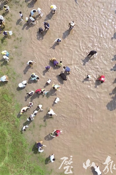 ▲ 5月1日,正興鎮(zhèn)潤天河農(nóng)莊,游客體驗(yàn)摸魚項(xiàng)目。