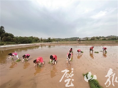 “分秧要均勻,秧苗之間要保持一定間距……”在護(hù)普村成片的高標(biāo)準(zhǔn)農(nóng)田里,擅長農(nóng)作的老黨員劉洪仁、人大代表尹道富仔細(xì)講解著秧苗的種植步驟,志愿者躍躍欲試,紛紛挽起衣袖、卷起褲腿,干勁十足“扎”進(jìn)水田,大家分工明確、協(xié)同合作,分秧、送秧、插秧,不一會兒,一塊兩畝多的農(nóng)田便換上“綠裝”。