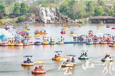 “五一”期間,璧山天氣晴朗,市民出游熱情高漲,游客接待量全線飄紅。其中,公園游成為我區(qū)旅游市場(chǎng)中最大的亮色。作為“網(wǎng)紅”公園,楓香湖兒童公園受到眾多游客青睞。