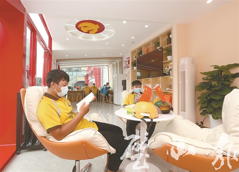 外賣員在暖心驛站休息(資料圖片)