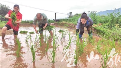 在“小黛田”項(xiàng)目,村民利用好時(shí)節(jié)插秧。