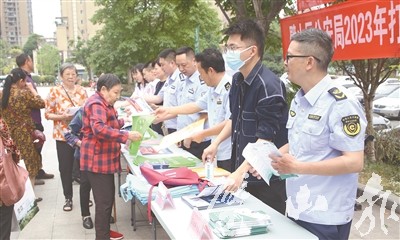 5月15日,區(qū)公安局聯(lián)合區(qū)金融風(fēng)險(xiǎn)防控辦、區(qū)市場(chǎng)監(jiān)管局、區(qū)稅務(wù)局等10余部門(mén)在俊豪中央大街集中開(kāi)展以“與民同心,為您守護(hù)”為主題的打擊和防范經(jīng)濟(jì)犯罪宣傳日活動(dòng),與廣大市民“零距離”接觸,普及安全防范知識(shí)。