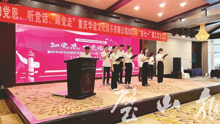 6月30日,重慶華誼文化娛樂有限公司開展2023年慶“七一”職工文藝匯演。本次活動以“知黨恩、聽黨話、跟黨走”為主題,全體職工通過奏唱國歌、朗誦、小品等形式,表達(dá)聽黨話跟黨走的堅定信心。
