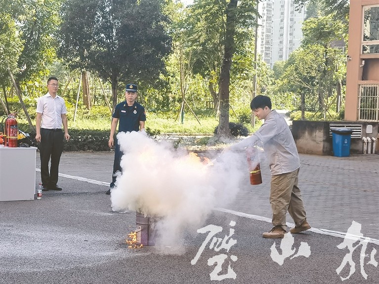 演習(xí)活動模擬火災(zāi)場景為背景,設(shè)置了消防救援、疏散逃生、緊急報警等環(huán)節(jié),大家沉著冷靜,熟練地按照滅火的步驟和方法將火勢控制并成功撲滅。在活動開始前,區(qū)消防救援人員為租戶們詳細介紹了火災(zāi)的常見原因、應(yīng)對措施和逃生知識,并普及了如何正確使用滅火器等消防設(shè)備的方法。