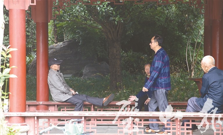 7月13日,觀音塘濕地公園,一市民躺在涼亭座椅上休息,公共長椅儼然成為私人“躺椅”,不僅導致散步的市民中途休息沒有座椅,還影響公共場所文明。