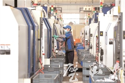 重慶龍潤汽車轉(zhuǎn)向器有限公司車間,工作人員在調(diào)試智能化生產(chǎn)設(shè)備。