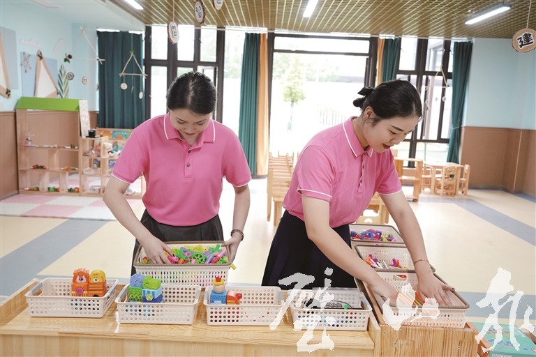 城關(guān)第二幼兒園朗詩(shī)校區(qū)教師在準(zhǔn)備學(xué)習(xí)用具