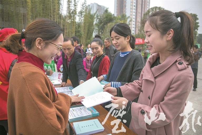 扶貧工作人員向市民發(fā)放扶貧宣傳資料。