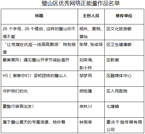 中共重慶市璧山區(qū)委網(wǎng)絡安全和信息化委員會辦公室 關于網(wǎng)絡正能量作品征集活動評選結(jié)果的通報