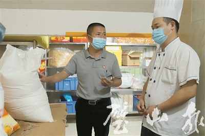 “今天上午的體溫監(jiān)測有沒有異常?消毒都做到位沒有?”“白糖、面粉這些用了之后要及時把袋口封緊,避免受潮結(jié)塊,影響質(zhì)量?!薄?月7日上午,在江豐大酒店,從前臺到后廚,酒店負責人曾德斌對疫情防控、食品安全等每一項工作的落實情況都進行仔細檢查。