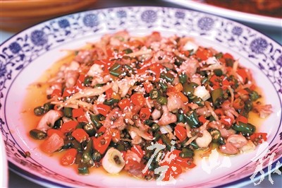 來(lái)自錦宏居的李師傅用萵筍頭制作了一道爽脆可口的“舌尖上的翡翠”?!拌瞪揭颉匠霭资鳚?rùn)如玉’而得名,之所以將萵筍頭取名‘翡翠’,是想讓大家知道璧山就是一塊晶瑩剔透的碧玉。”李師傅說(shuō)。