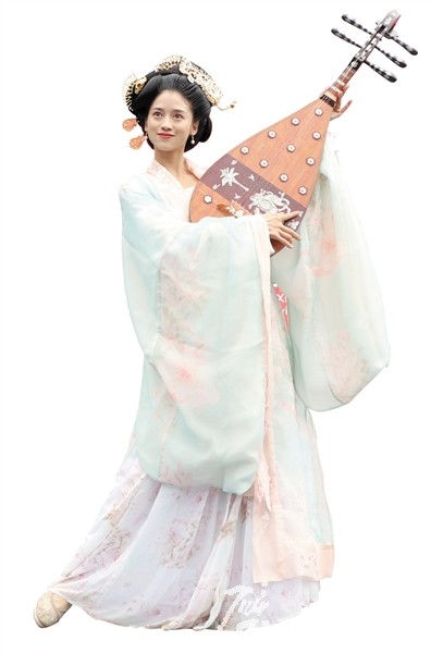 伴隨著輕柔婉轉(zhuǎn)的音樂,12名身著不同時(shí)代、不同款式漢服的模特兒們依次登臺(tái)亮相。他們步履輕妙、衣袂飄飄,根據(jù)各自漢服的特點(diǎn),或張弓射箭,或拔劍出鞘,或彈奏琵琶……舉手投足間盡展?jié)h服之美。