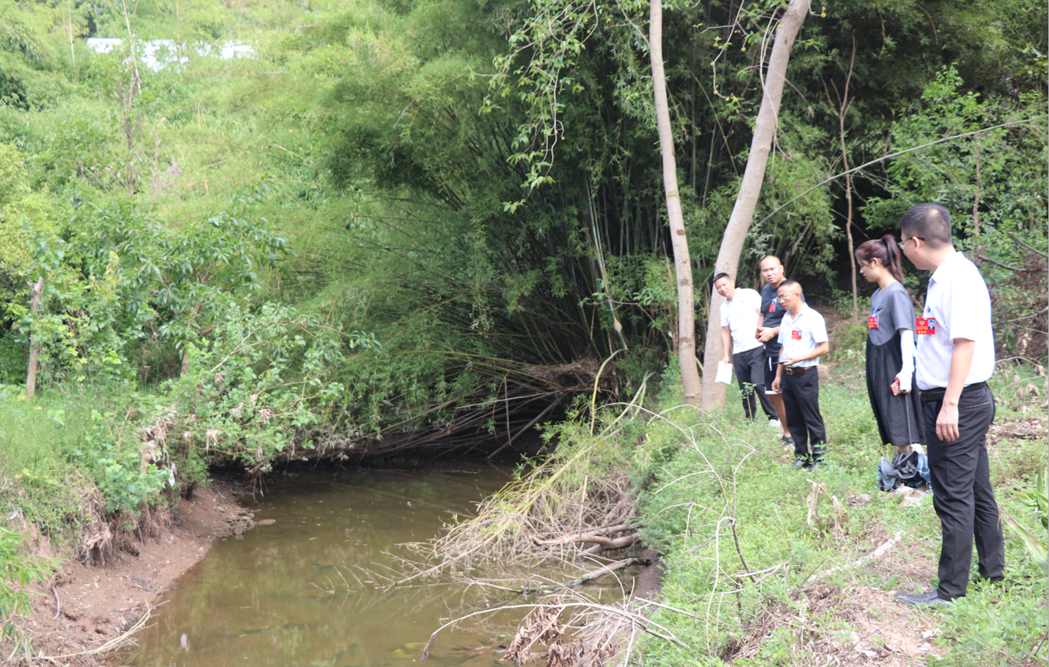 委員們先后來(lái)到皇廟溝河道、雷公凼水庫(kù)等地進(jìn)行實(shí)地察看污水亂排、垃圾亂倒、侵占河道等現(xiàn)象,當(dāng)發(fā)現(xiàn)河道兩邊存在白色垃圾及樹(shù)枝、岸邊的竹子倒塌在水溝中間、水溝上流有家禽等問(wèn)題時(shí),委員們立即與鎮(zhèn)建設(shè)環(huán)保中心聯(lián)系,要求立即將河溝中的白色垃圾進(jìn)行清理,倒塌的樹(shù)枝進(jìn)行砍伐清理,并通知附近農(nóng)戶將家禽進(jìn)行圈養(yǎng),禁止將其放入河溝中。