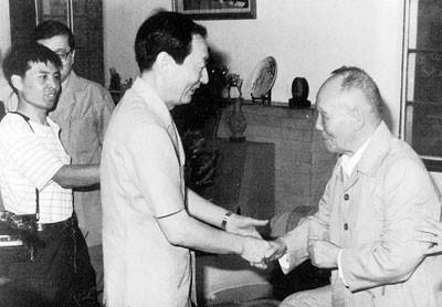 趙祖康(右)受到朱镕基總理接見 杜鎮(zhèn)遠(yuǎn)(左)與茅以升(右)